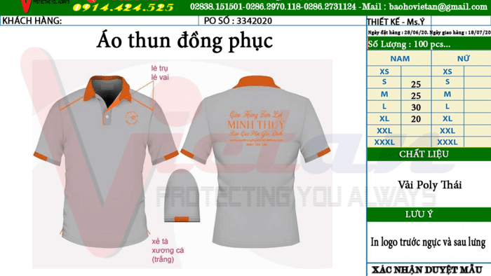 Điện thoại : 0912.280.989 Ms Tâm – Mail : kd.dongphucvietan@gmail.com